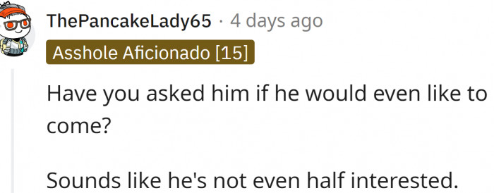 Maybe the best thing would be for him not to come to the county at all. Well, the best thing would be for him to suck it up and do the right thing- participate in the activities, get to meet the family, and bond with them…