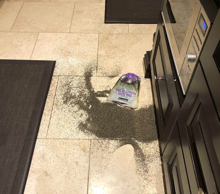 "My Mom Was Just Finishing Cleaning The Kitchen And Then Spilled A Bag Of Chia Seeds On The Ground"