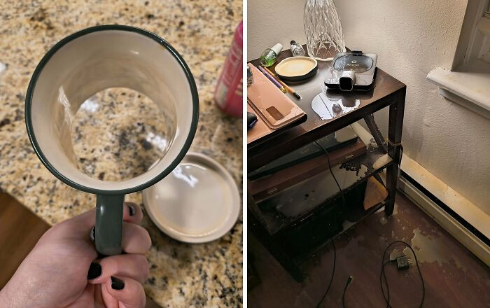 "Bottom Of My Mug Fell Off, Full Mug Of Tea Everywhere"