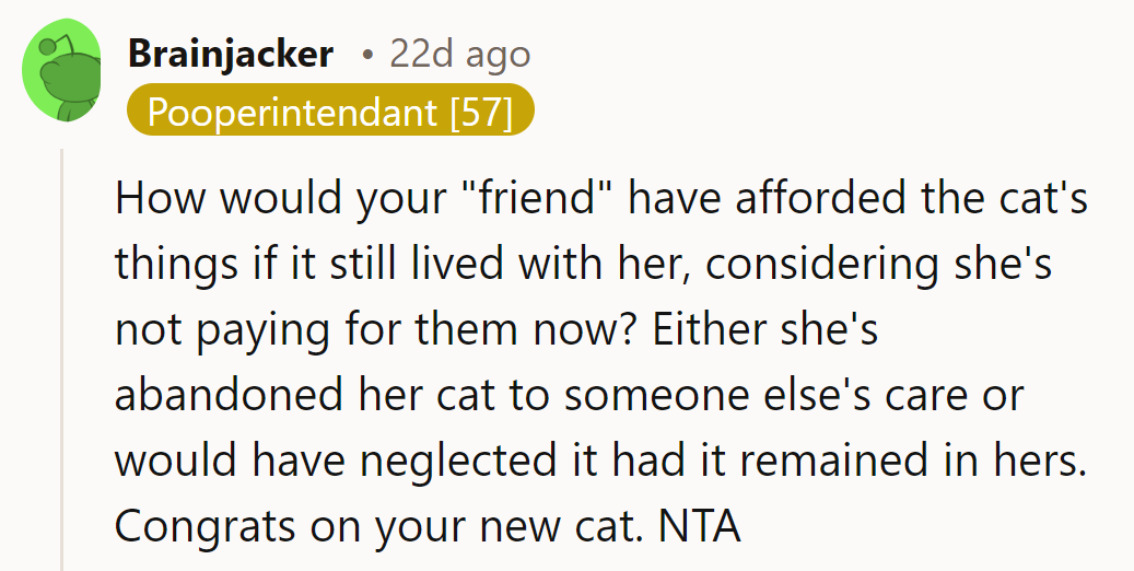 The caretaker finally reached a breaking point and issued an ultimatum: pay up or risk losing the cat for good. The friend, now feeling cornered, accused the caretaker of being unreasonable, sparking a heated debate.
