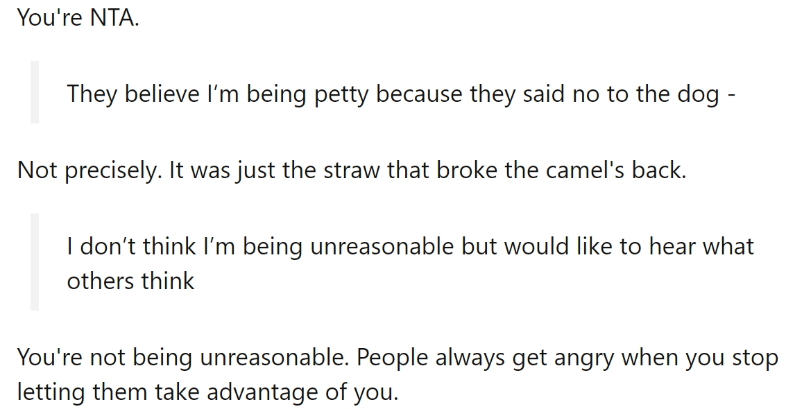 One Redditor suggested she could get her own Airbnb for herself and the puppy