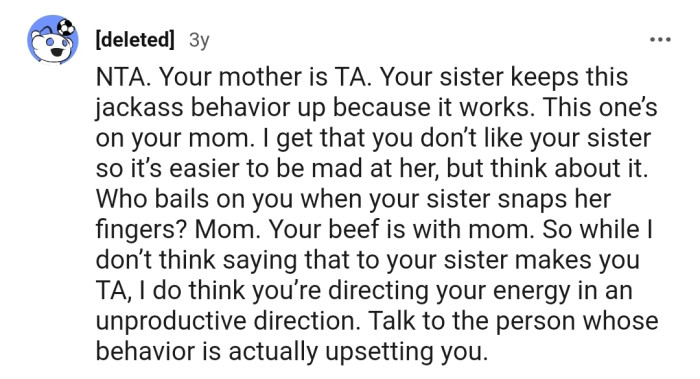 It was their sister, yet again invoking the painful memory, demanding their mother's immediate presence. And just like that, OP found themselves abandoned, forced to finish preparing the soup on their own.