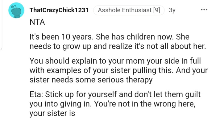 As the Reddit community rallies around OP, their experiences strike a chord with many who have encountered similar family dynamics. With overwhelming support, it becomes clear that their mother's enabling behavior has perpetuated their sister's attention-seeking tactics.