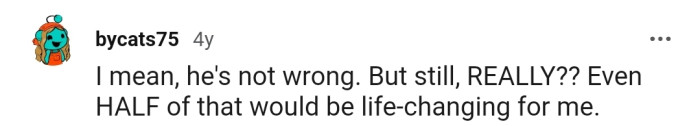 "Even HALF of that would be life-changing for me."