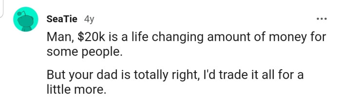 However, OP's dad's response might have thrown cold water on that excitement. His reply? "I wish it were more." Yes, you read that correctly.