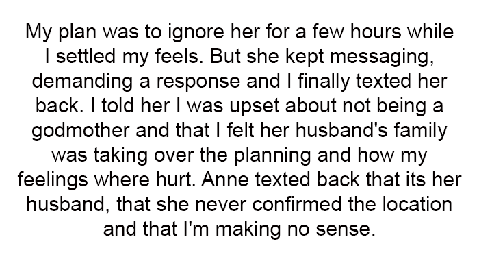 AITA For Being Upset About Not Being Made Godmother And Left Out Of Baby Shower Planning