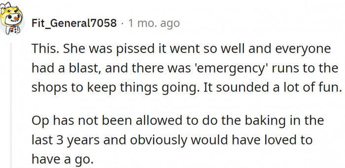 This made OP's wife angry, as she felt he embarrassed her by making too many cookies. She accused him of upstaging her and even called him an a-hole.