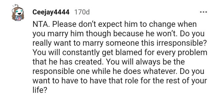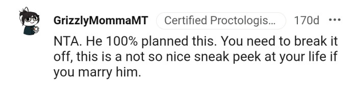 "You need to break it off; this is a not-so-nice sneak peek at your life if you marry him."