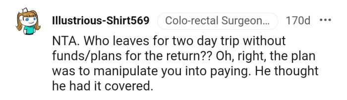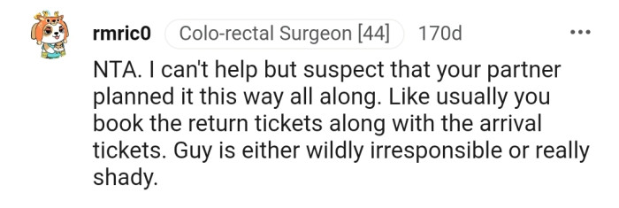 Reddit.comOP's fiancé eventually borrowed money to take his friend on the vacation. Surprisingly, when it was time to return, he called OP and asked that they fund their flight home. OP refused for the second time, forcing her fiancé and his friend to spend 8 hours returning by road.