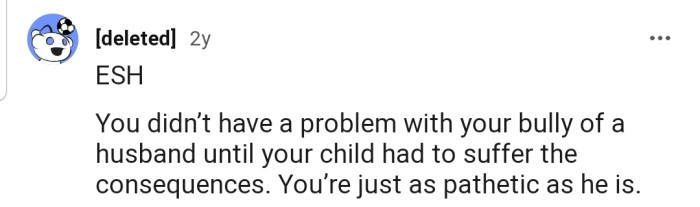 "You didn’t have a problem with your bully of a husband until your child had to suffer the consequences."