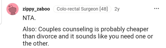 "Couples counseling is probably cheaper than divorce and it sounds like you need one or the other."