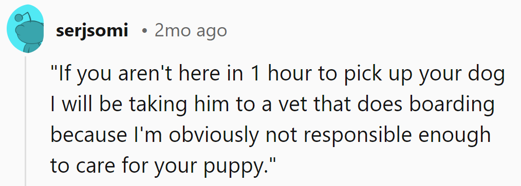 Acting responsibly, the couple took the puppy to the vet after a brief call with the owners, who seemed to approve of the decision. Despite their efforts to ensure the dog's safety, the owners went silent after the vet visit, leaving the sitters with a $300 vet bill.
