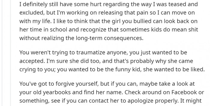 Being bullied is a nightmare, but the haunting thought that you were one of the bullies is also a regret of a lifetime.