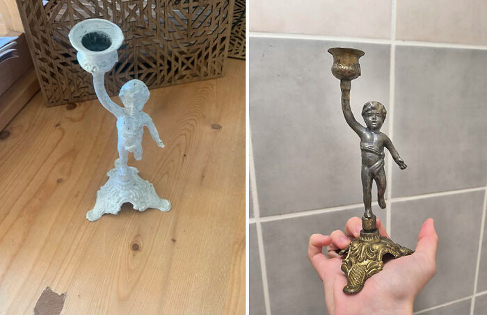 "I Found This Lovely Little Cherub Candelabra On Vinted For 2 Euros; Covered In White House Paint And Chipping Layers Of Gold Paint And Plating"