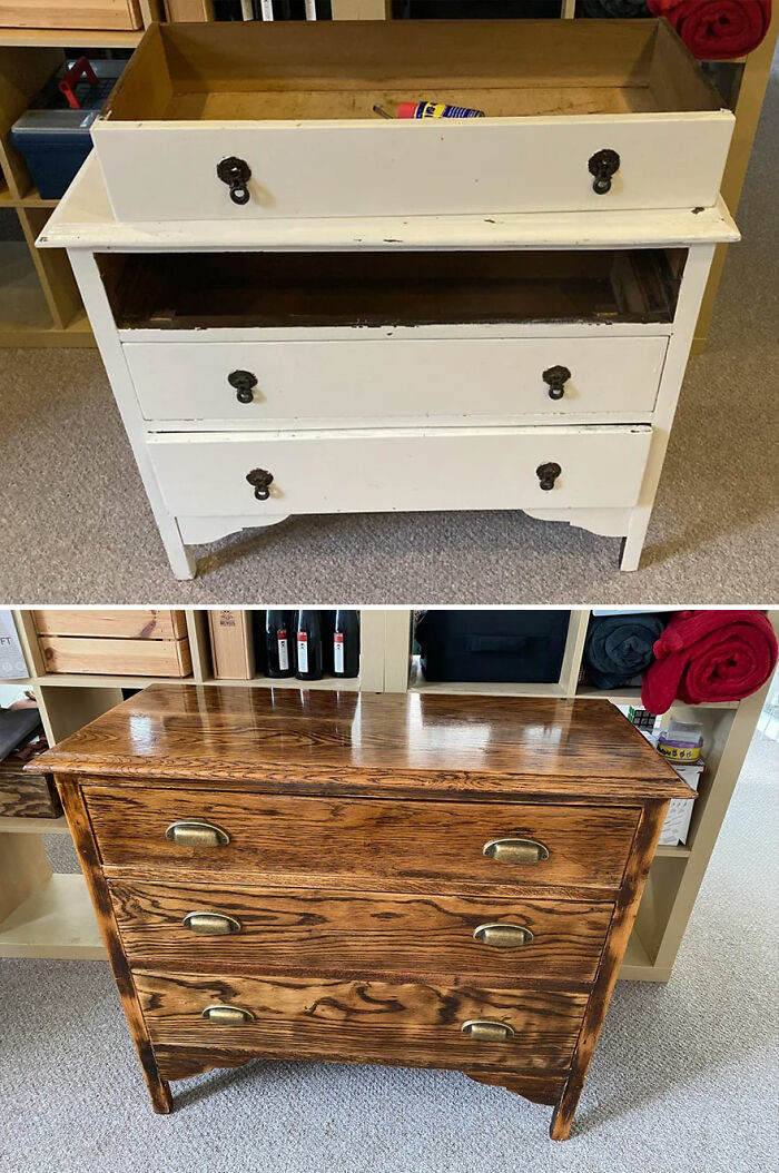 "I Finally Finished Revamping This Old Dresser From The Fb Marketplace."