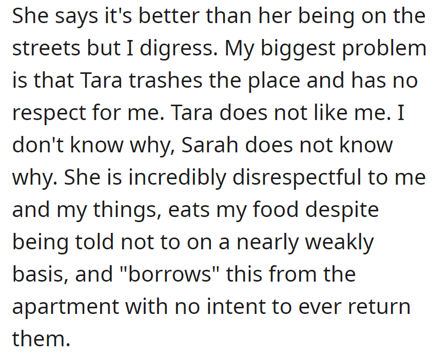 This lack of respect and disregard for boundaries pushed OP to his limit, culminating in a heated confrontation where he expressed his frustration and ultimately banned Tara from their home.