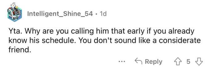 Reddit/Ok-Appointment-6518The OP wakes up and starts his day at 3:30am every morning. And at 7:30am, he calls his neighbor to see what his plans are for the day.