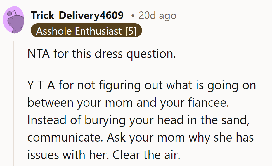 Despite these fears, the man hesitates to confront his mother directly about the choice of dress color, suggesting instead that his fiancée's wedding stress may be amplifying her paranoia. This situation definitely shows the delicate balance between respecting family dynamics and ensuring that the bride's vision for her perfect day remains intact, underscoring the emotional complexities that can surface in the lead-up to a wedding.