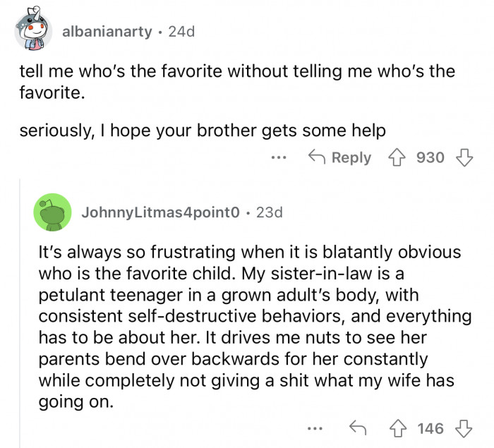 "It’s always so frustrating when it is blatantly obvious who the favorite child is..."
