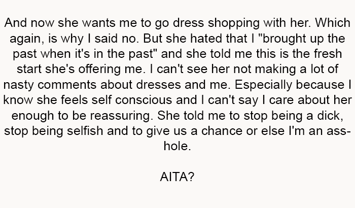 AITA For Refusing To Go Wedding Dress Shopping With My Sister