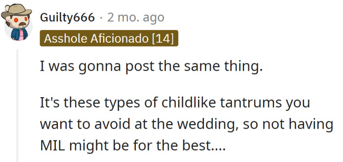 She expressed that the best man and other family members might boycott the wedding due to the couple's decision. The OP is particularly upset, feeling that the mother-in-law is unfairly manipulating the situation.