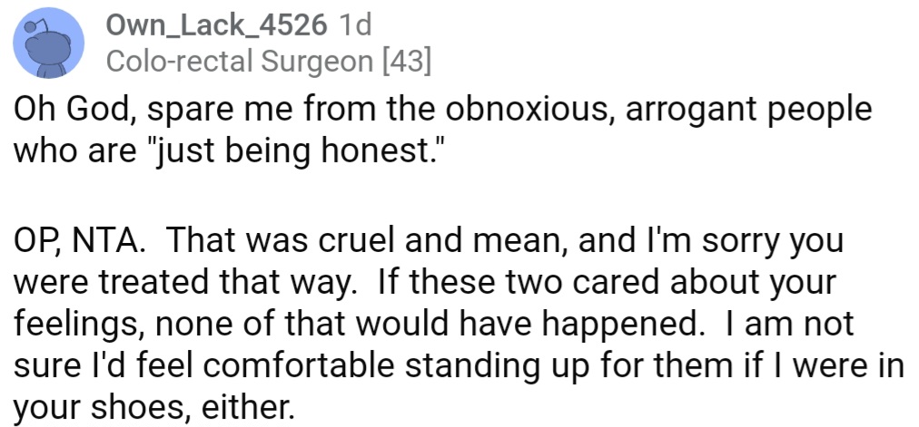 OP's loved ones refused to apologize for their hurtful comments because they felt they were simply speaking the truth.
