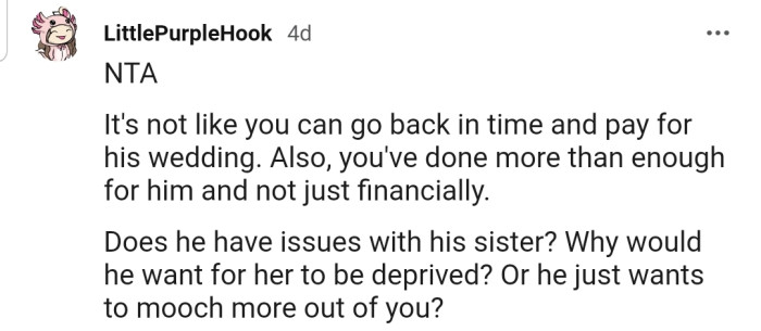 "It's Not Like You Can Go Back in Time and Pay for His Wedding. Also, You've Done More Than Enough for Him and Not Just Financially."