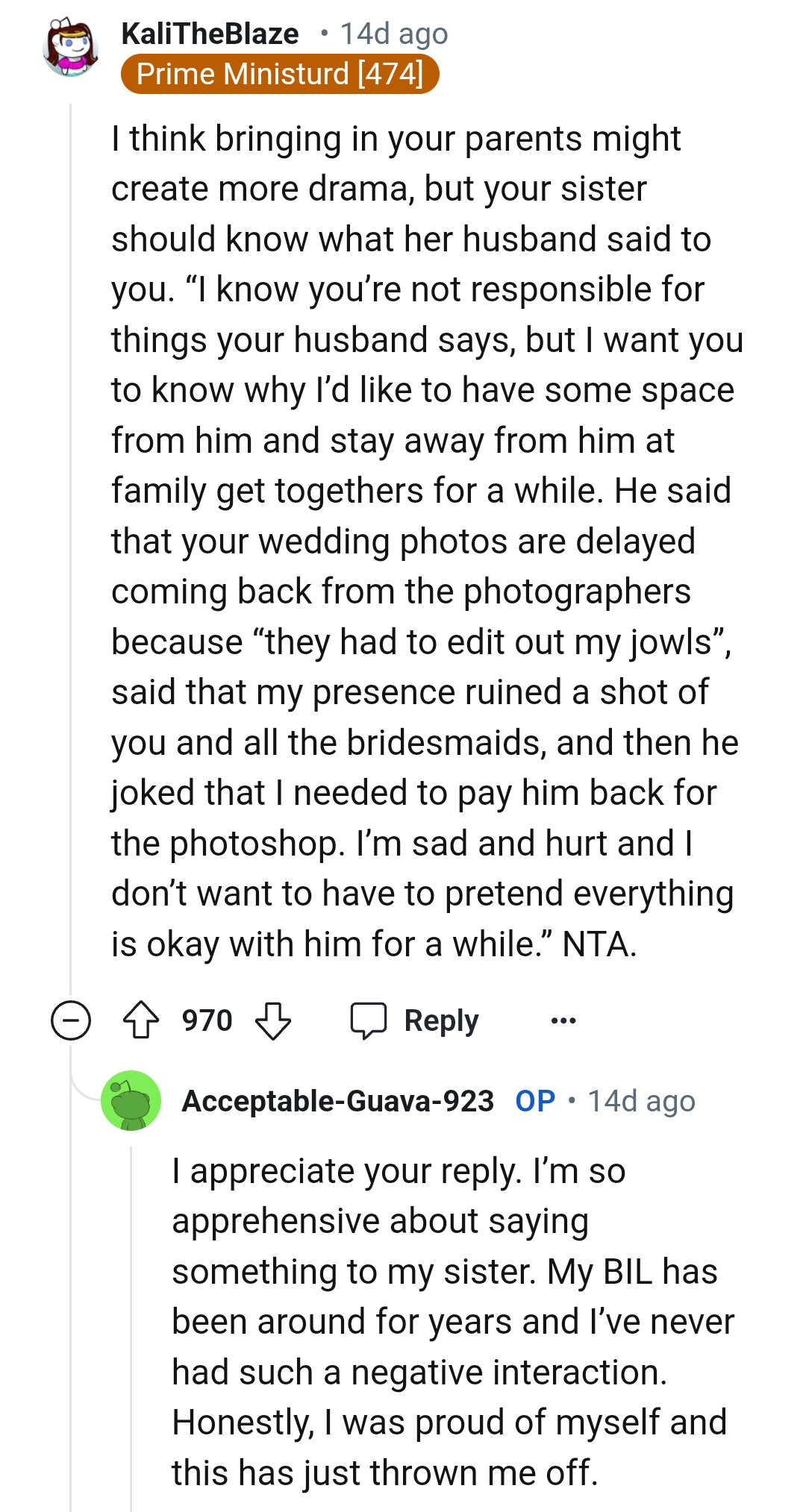 Am I the ahole for not paying my brother-in-law back for his wedding photo editing?The Reddit post got hundreds of comments, and here are some of the most upvoted ones