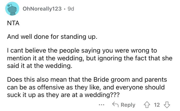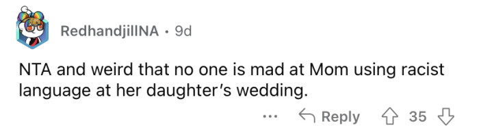 Redditor Receives Backlash For Calling Out The Mother Of The Bride At A Wedding For Her Racist Comments