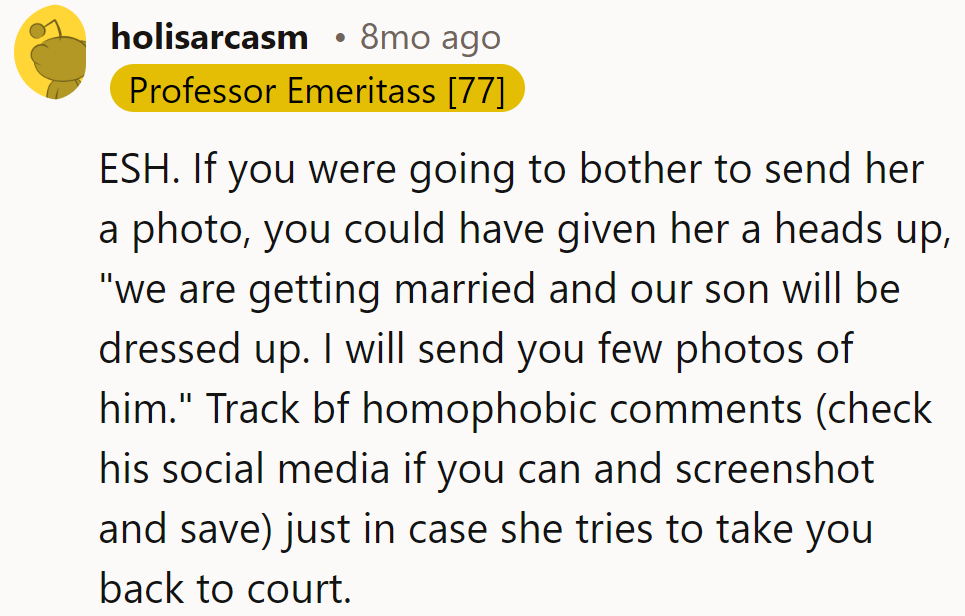 Ex upset about wedding invite, demands son back. Her family calls him an asshole.