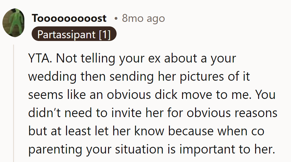 For the man, informing his ex-wife might have seemed unnecessary, but it can be crucial for maintaining a respectful co-parenting relationship.