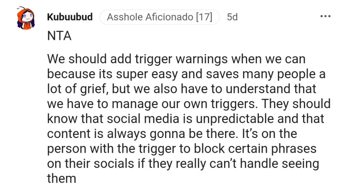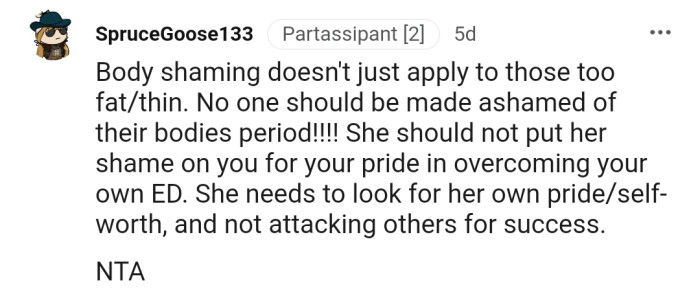Reddit.comApparently, Len Feels That the Post Is Inappropriate Because OP Posted Without a Warning. In Her Opinion, This Can Cause a Relapse in People with Eating Disorders