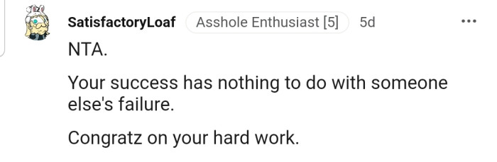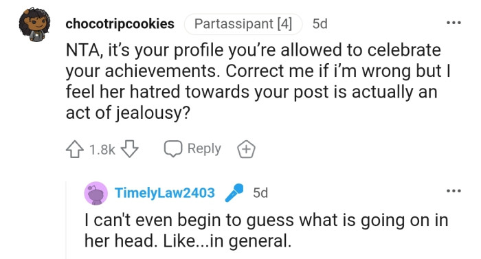 Many commenters also believe OP has done nothing wrong in trying to celebrate their achievements.