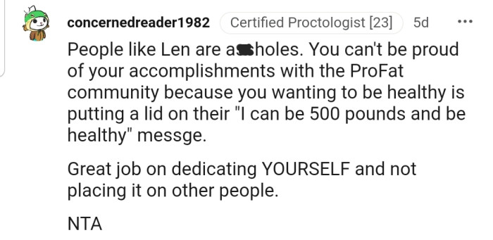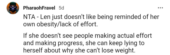 "Len Just Doesn’t Like Being Reminded of Her Own Obesity/Lack of Effort."