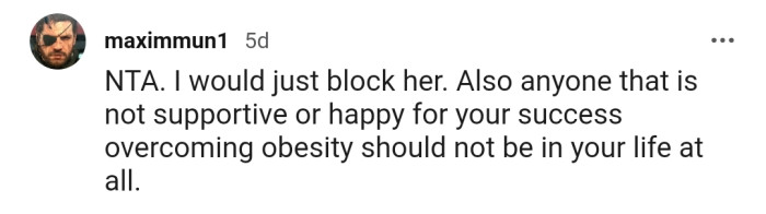 OP shared on the AITA subreddit that they had worked hard to lose 120 lbs in three years after being obese since childhood.