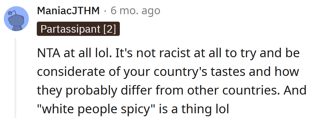 Reddit/Far-Cauliflower7435She explained that she is from an ethnic background that loves very spicy food.