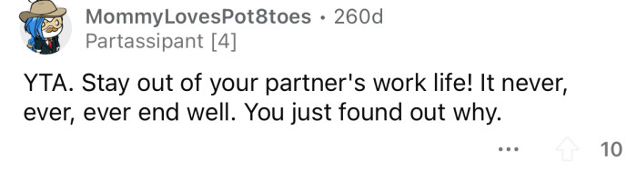 "Stay out of your partner's work life."