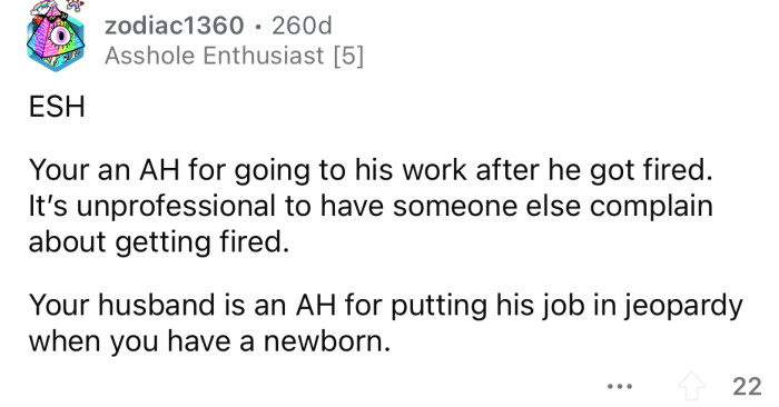 Redditor Goes Behind Her Husband's Back to Beg His Boss for His Job Using Their Baby as a Guilt Trip