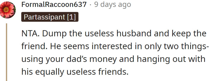 However, it seems that the husband had had enough of having a guest in the house, and he chose a really inappropriate way to express that to his wife. The Redditor stood up for her friend and insulted her husband in return.