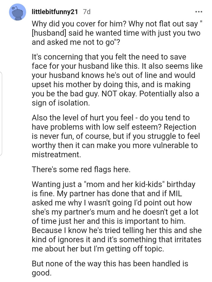 Redditor Shares Heartbreaking Story Of Being Excluded From MIL's Birthday Dinner By Their Own Husband