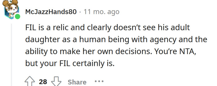 "You're NTA, but your FIL certainly is."
