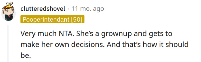 "She's a grown-up and gets to make her own decisions."