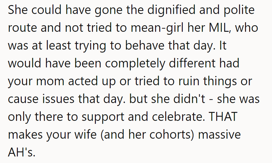 Wife's beef with mom doesn't justify cruelty. Mean girl alert!