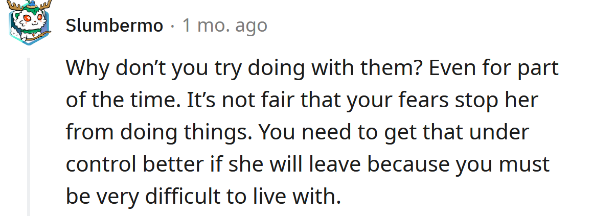 "It's not fair that your fears stop her from doing things."