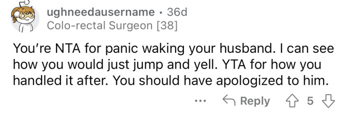 Reddit/That-girl-you-knewAfter they realized the dog was okay, the OP's husband told her he wouldn't be able to go back to sleep.