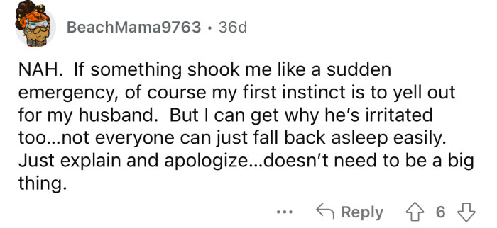 What are your thoughts on this situation? Do you think the OP was out of line for the way she treated her husband, or did he overreact about her waking him up?