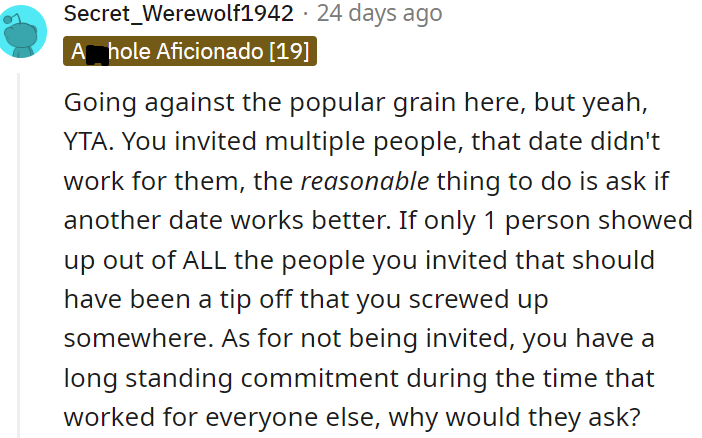 OP Was Hurt That No One Even Bothered to Ask If He Would Be Interested in Attending