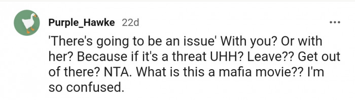 "NTA. What is this, a mafia movie?? I'm so confused."