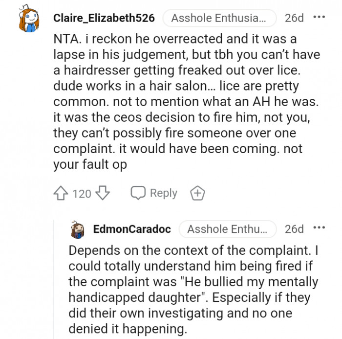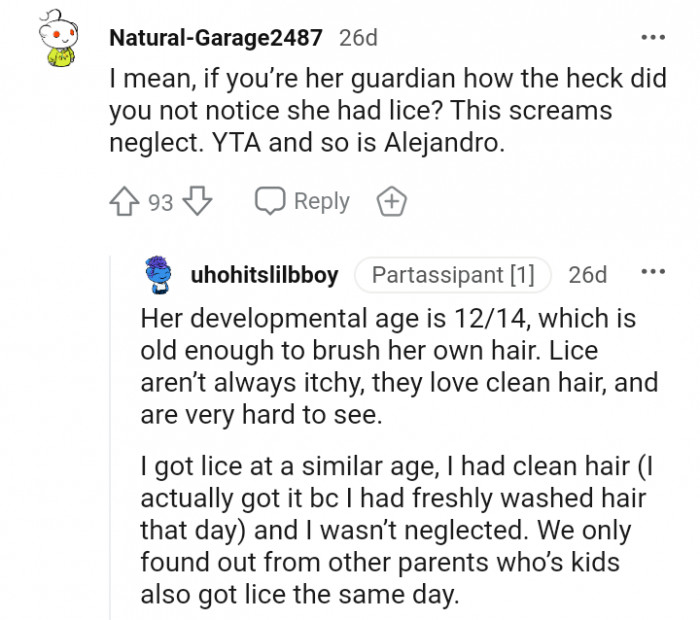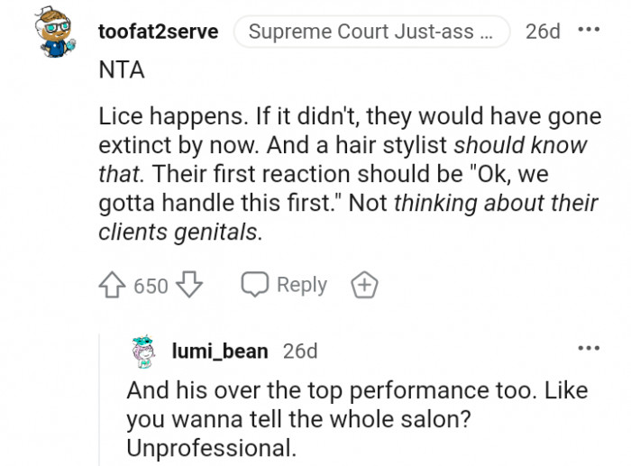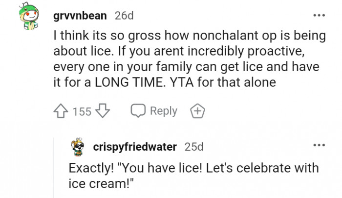 "He should've been more discreet about the problem. But you are a bigger asshole for not dealing with lice problem"