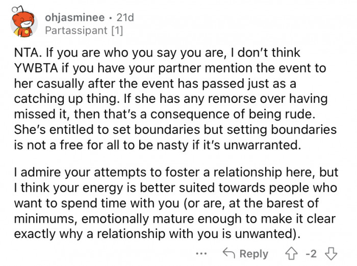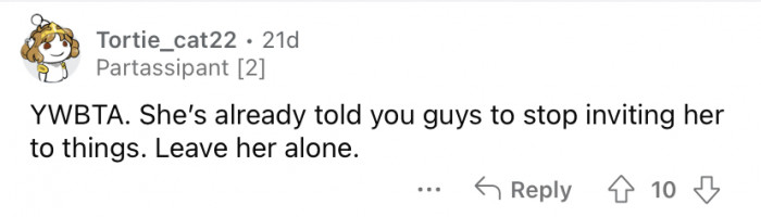 Some of the OP's friends advised her to respect the daughter's boundaries and forget about inviting her to the event. Keep scrolling to find out how the people of Reddit reacted.